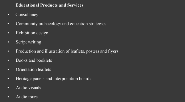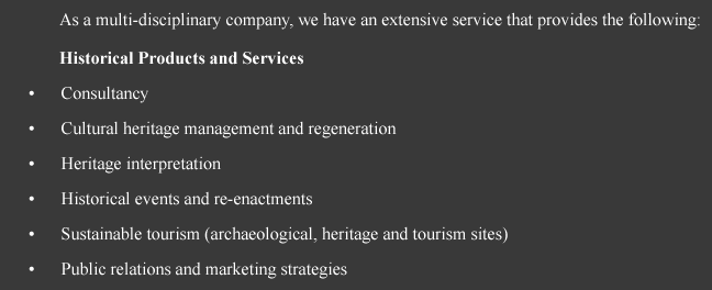 Our company works with a range of clients including museums, historic properties, heritage interpretation centres and archaeological sites, visitor centres, national parks, tourist attractions and partnerships, NGO's, local, regional and national government agencies in Europe, North America, Africa, the Middle East and Asia to provide an international heritage management, interpretation and consultancy service for sustainable tourism projects and events. We also advise and assist with improving tourism infrastructure, development, promotion and marketing to support our range of international services to our clients.